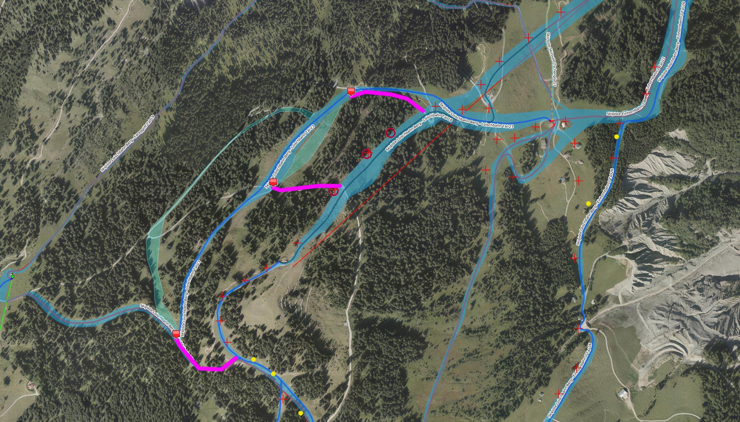 Rote Kreuze: aktuelle Schächte für mobile Schneekanonen