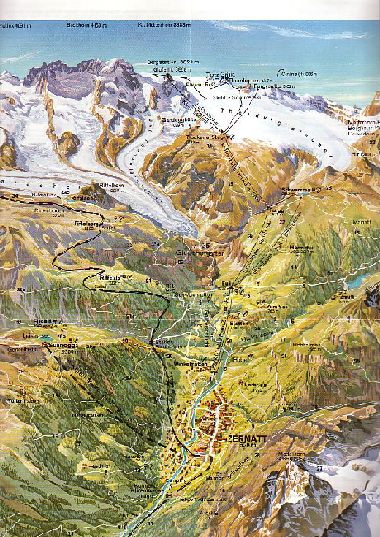 Aus: 2 Wochen im Schnee - Europäische Wintersportorte laden ein; Heyne-Reisebücher 1975, aktualisierte Ausgabe 1980:Weiß jemand, ob dieser Plan wirklich Aussicht auf Realisierung hatte oder ob er in die gleiche Kategorie wie der Plan für ein geschlossenes Seilbahnnetz in den Dolomiten zwischen Bozen und Cortina aus den 30-er Jahren einzuordnen ist?Als letztes Jahr die abgasfreie Höhenluft im autofreien Zermatt durch den Einfall von Omnibussen bedroht war, protestierten mehrere tausend Dorfbewohner und Wintersportgäste mit einem Fackelzug. Unbekannte sabotierten die Testfahrt des neuen Transportmittels, indem sie Zucker in den Tank schütteten. 30 Jahre früher hatte schon einmal eine Protestaktion weites Aufsehen erregt. 200000 Unterschriften, in aller Welt von der Alpinen Vereinigung Zermatt gesammelt, konnten 1946 den von den Italienern geplanten Bau einer Seilbahn auf das Matterhorn verhindern.....