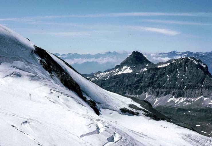 Das Kuriose war dabei ja, dass man damals nicht wie heute direkt von oben an der Theodulhütte vorbei fahren konnte, um wieder auf den Schweizer Gletscherbereich zu kommen. Man musste ein Stück den Verbindungsweg unterhalb der Hütte bergan schieben... aber damals waren die Skifahrer ja noch "etwas härter im Nehmen".
