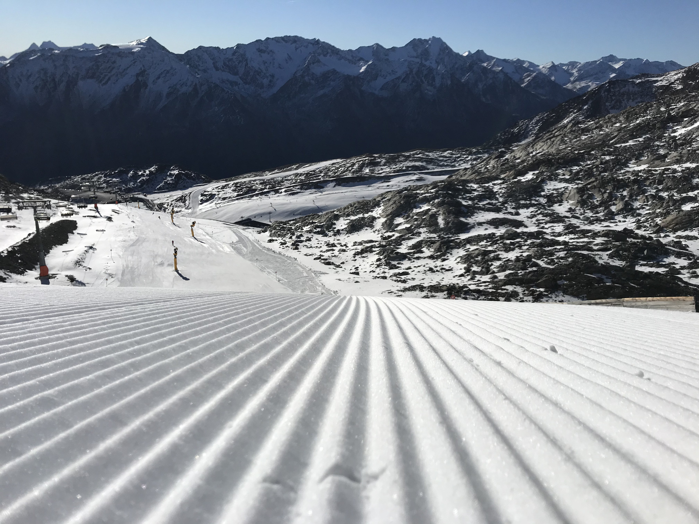 Aktuell schneit es ja ganz schön in Sölden. Das reicht auch schon um die aktuell offenen Pisten wieder auf Vordermann zu bekommen (denke ich). Es wurde unterhalb vom Giggijoch noch recht wenig beschneit auf der Gaislachkogelseite noch weniger (so wie ich das einschätzen kann). Heute waren die Pistenbullys an der Roßkirblbahn aktiv. Weitere Öffnungen sehe ich mit der aktuellen Schneelage nicht.
