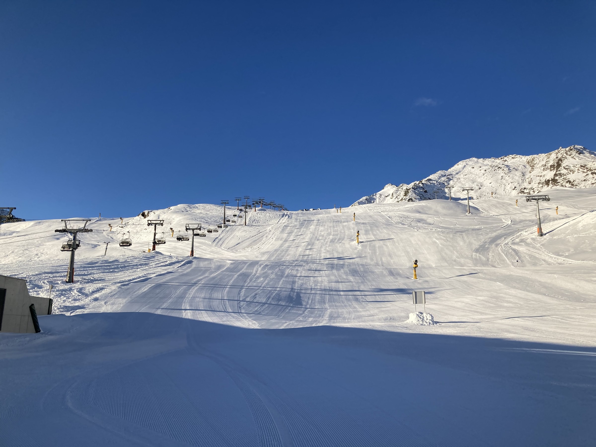 Wenn sich die Bedingungen weiterhin so gut bleiben und die Beschneiung weiterhin so möglich ist, ist eine Öffnung vom Giggijoch inkl. Zubringer aus dem Tal im Laufe der kommenden Woche sehr wahrscheinlich, aber noch nicht ganz fix.
