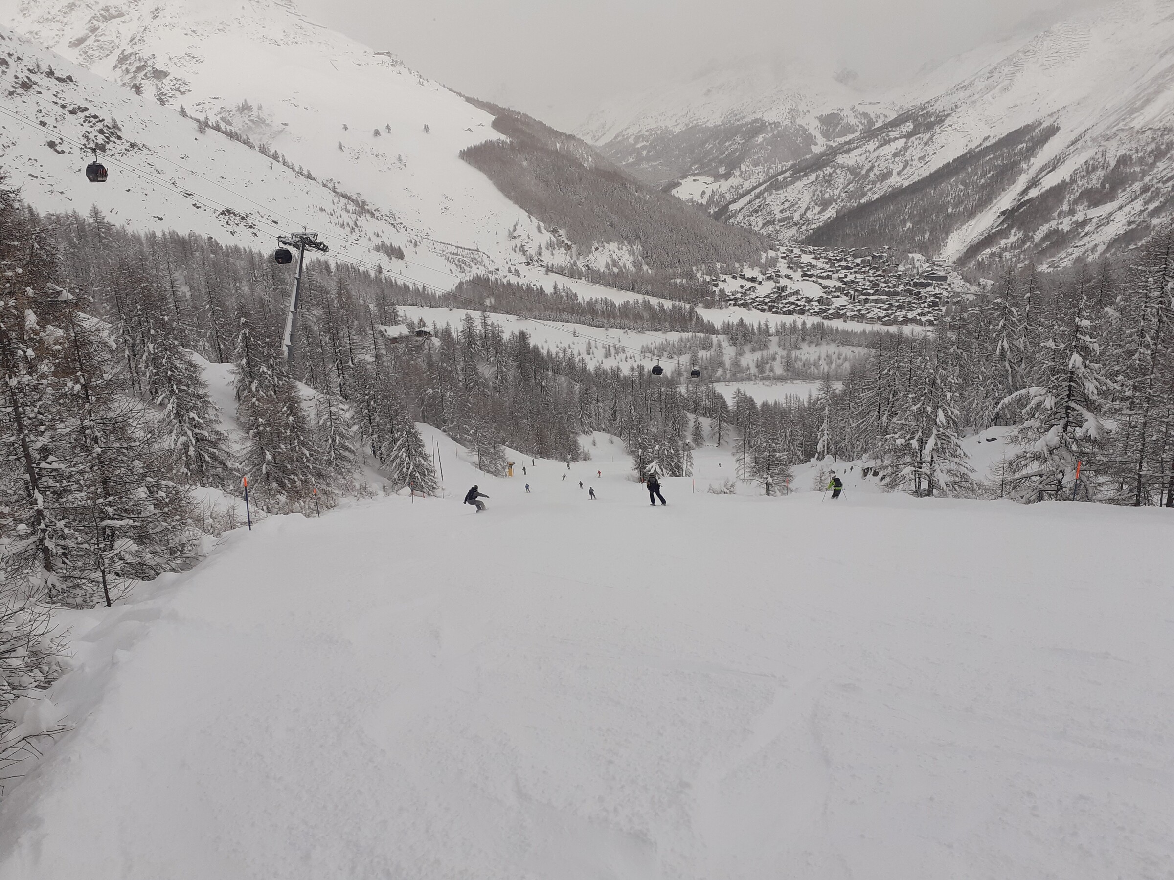 Die Bedingungen waren perfekt: breite, gut präparierte, leere Pisten. Bis Kreuzboden ausgezeichneter Schnee. Darunter ist es morgens etwas hart (aber nicht zu hart) und nachmittags nass. Die Talabfahrt ist noch ziemlich gut, auch wenn das nicht mehr lange so bleiben wird, wenn es weiterhin so warm bleibt... Die gelbe Talabfahrt in Saas-Balen ist geöffnet und kann befahren werden.