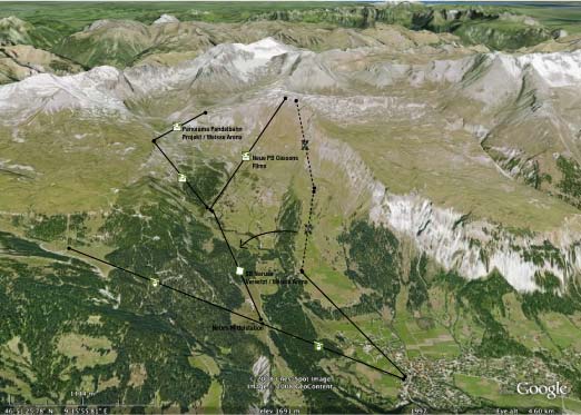- ?-PB Grauberg-Crap la Tgina (2233 m – 2424 m) (Für Skifahrer eher uninteressant) --> dunkelgrün