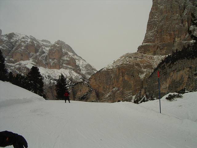 Anschließend beschlossen wir doch in Gröden eine Unterkunft zu suchen, da uns dort die Orte beim Durchfahren symphatischer erschienen als Canazei. So fanden wir dann auch in St. Christina, dem mittleren und günstigsten Ort der drei Grödner Dörfer ein einfaches Zimmer um 23 Euro pro Person für die ersten 2 Nächte. Die dritte Nacht wohnten wir in St. Ulrich. Die meisten Apres Ski Lokale gibt es in Wolkenstein am Talschluss, dorthin verkehrt ein Nachtbus von 21 - 2 Uhr.