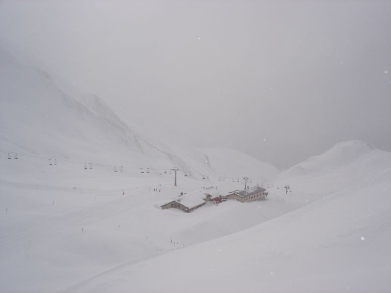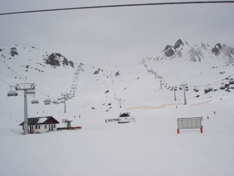 In der Mittelstation sind wir dann in die Fimbabahn eingestiegen und wieder auf die nebelige Idalpe gefahren. Über die Idjochbahn ging es wieder in die Schweiz. Dort fuhren wir über die herrlich pulvrige 63 bzw. die Schleppspur des verbliebenen Viderjochlifts (steht zwar noch, fehlt aber schon in den Panoramakarten) auf die Alp Trida.