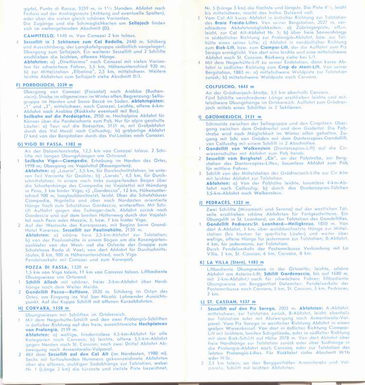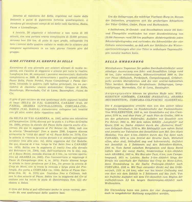 Jetzt ein Faltplan aus den Anfaengen der SELLA RONDA. Das Teil muesste von vor 1966 sein, da der Stehkorblift "Piz La Villa" in La Villa noch nicht eingezeichnet ist.