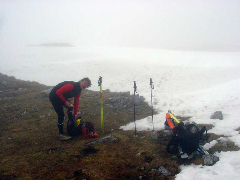 Das Wetter war leider nicht besonders (nebelig), Gott sei Dank waren die Temperaturen aber hoch genug um im herrlichen Firn abfahren zu können