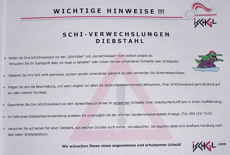 Schade eigentlich, so geht einiges Vertrauen in die Menschheit verloren. Ich fühle mich allerdings mit meinen Oldtimer-Ski noch relativ sicher. Allerdings habe ich neue Stöcke, brauche ich vielleicht doch ein Schloß? In jedem Fall finde ich diese Entwicklung