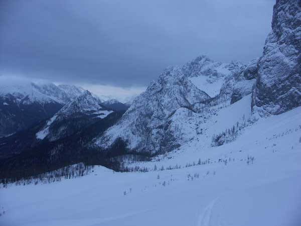Wie schon k2k angedeutet hat, war es in Sappada rein schifahrerisch keine Sensation, aber Ambiente und Kulisse waren durchaus interessant. Insbesondere die Stimmung am Umkehrpunkt unserer Miniskitour bei der Bergstation des aufgelassenen Liftes war sehr eindrucksvoll, zumal der am Abend über den Bergkamm streichende Wind eine ganz fremde und mit Worten eigentlich nicht beschreibbare Geräuschkulisse produzierte.