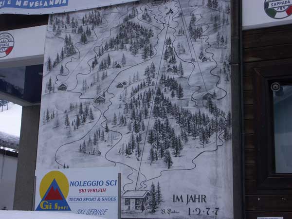 ist das ernst gemeint oder ein scherz?Nach einigen weiteren Fahrten am Schlepplift mit spannendem Skitausch - übrigens eine hochinteressante Erfahrung, ich kann jedem verwöhnten Carver nur empfehlen, mal für eine oder zwei Abfahrten downzugraden auf herkömmliche Ski, es müssen ja nicht gleich trincerones 205 cm lange Blizzard Vollplast aus den Sechzigern sein, das Modell aus den Achtzigern aus der Garage tut's sicher auch - nach dieser weiteren netten Episode also gingen wir über zum letzten Gebiet des Tages.