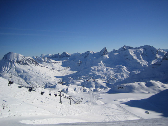 Zur Albona, vom Schnee wirklich gut, allerdings ein sehr kleines Gebiet (3 DSBs), was man an nem Vormittag durchhat. Ist eher interessant für freerider oder Tourengeher. Man wird also nicht drumherumkommen schnell nach St Antor rüberzuwechseln und dort Skizufahren.