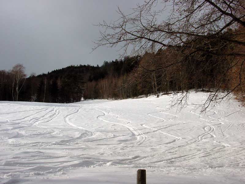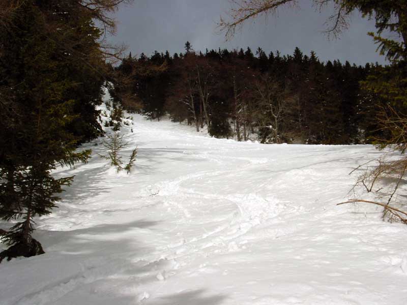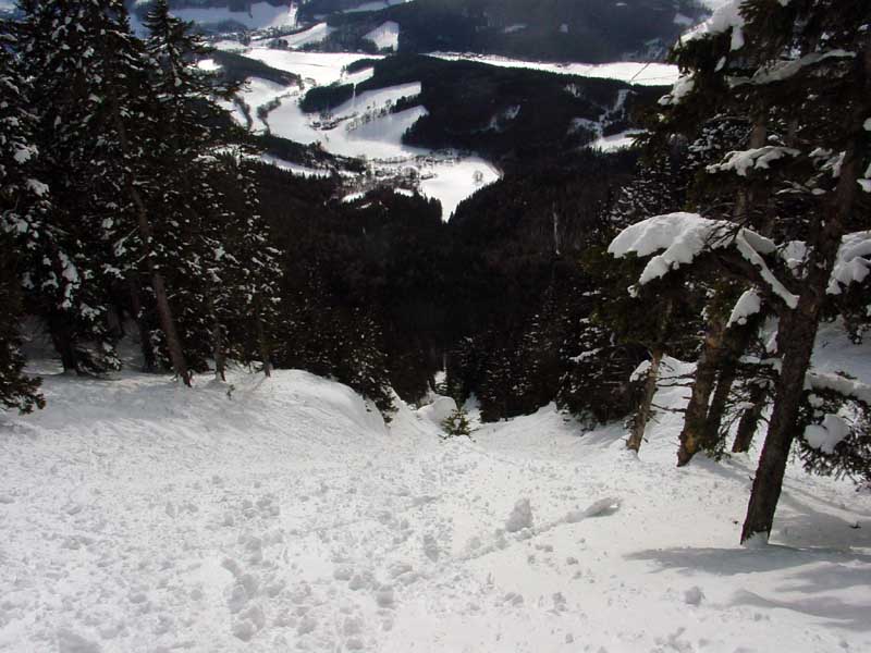 Nahc zwei Fahrten direkt unter der Seilbahn bzw. im daran angrenzenden Wald fuhr ich dann über den Lahngang, ein weiter östlich verlaufender Graben, ab. Danach ging's dann über eine der südlich verlaufenden Rinnen direkt von der Bergstation ins Tal.