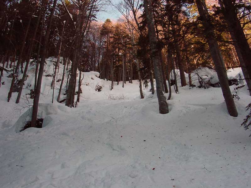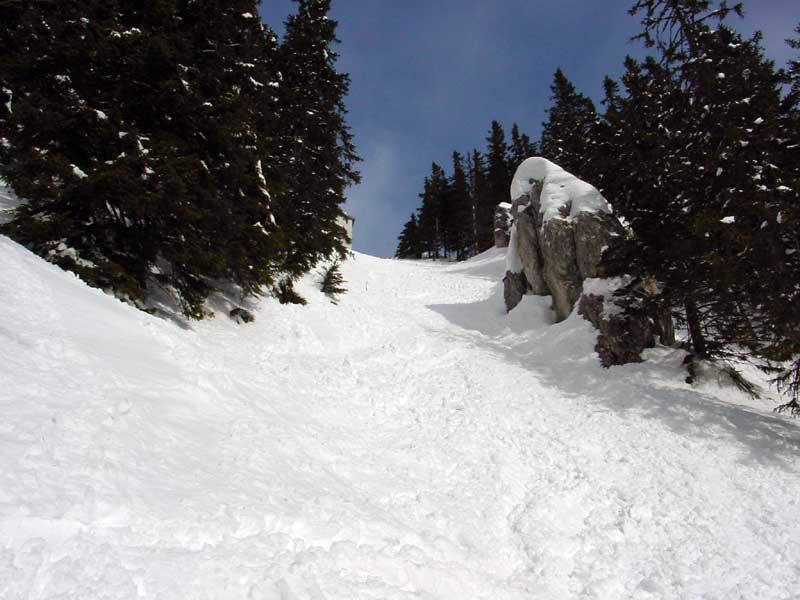 Auf Grund dieser Steilheit ist es nie überlaufen und man findet auch Tage nach dem letzten Schneefall noch genug unverspurtes Gelände.