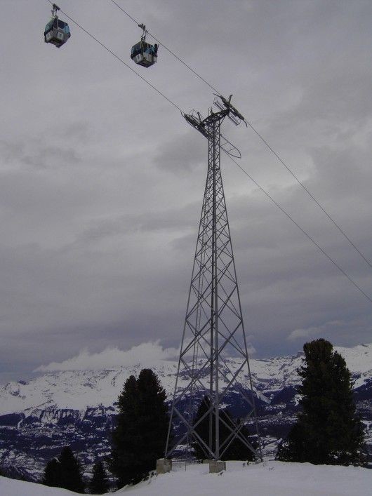 Die 4EUB (4-MGD) "Vercorin-Crêt du Midi" in Vercorin (Val d'Anniviers) führt in 2 Sektionen von "Vercorin" (1320m) über "Sigeroulaz" (1870m) auf den "Crêt-de-Midi" (2331m).