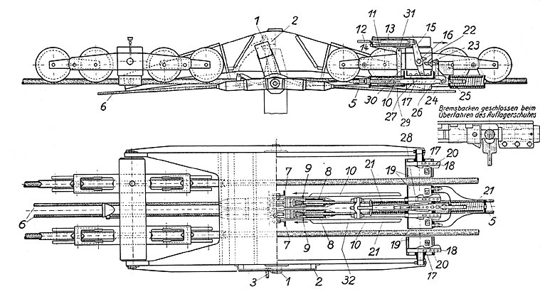 Liegt der Unterschied somit nur in der Lösung des Abheben-Problems, einmal mittels des gelenkig gelagerten Bremswagen und einmal mit diesen Kettengliedern? Und beides ist gleichwertig?