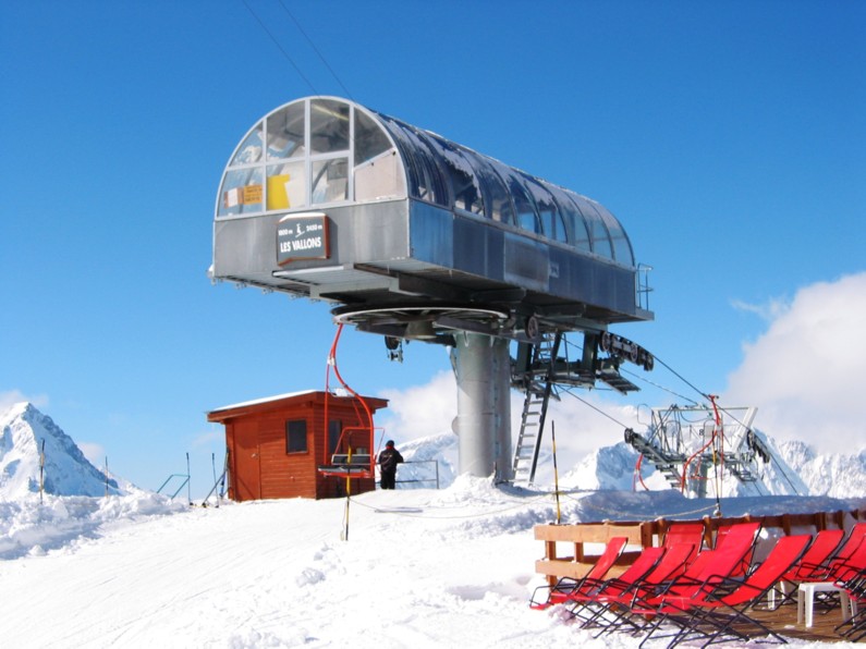 Bubbles hat keine einzige KSB, Bellecombes hat sogar explizit Cabrio-Sessel wegen der Windstabilität. Speziell die neueren KSBs aus dem Hause DM haben aber Förderbänder, einige 4-SBs auch, z.B. Vallée Blanche, die damit sehr flott läuft, aber trotzdem überlastet ist und für eine 4-SB einfach zu lang (1,5 km).