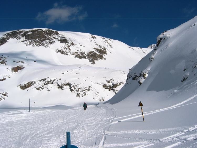 Wenn ich den Pistenplan richtig interpretiere, kann man von dieser Stelle aber mittels Ziehweg zur Talstation der DSB Vallon fahren.