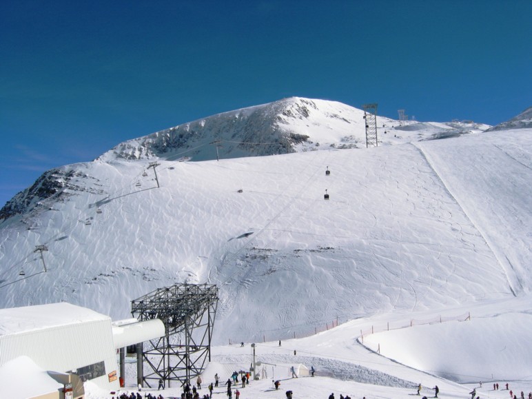 Einer der großen Vorzüge von L2A ist das große Gletscherskigebiet auf dem Glacier de Mont de Lans, in der Werbung oftmals als größtes seiner Art angepriesen und eines der ersten in Frankreich. Definitiv aber eines der letzten echten Sommerskigebiete, dem auch im August nicht der Schnee ausgeht. Von der Mittelstation Toura auf 2585 m ist man jedoch noch nicht auf dem Gletscher, der in den südlicheren Gefilden erst ab einer Höhe von 3100 m (westseitig) bzw. 2800 m (nordseitig) beginnt. Man hat also ein quasi extraterritoriales fast eigenständiges Skigebiet zwischen 2585 und 3523 m anzubieten, was wirklich enorm ist.