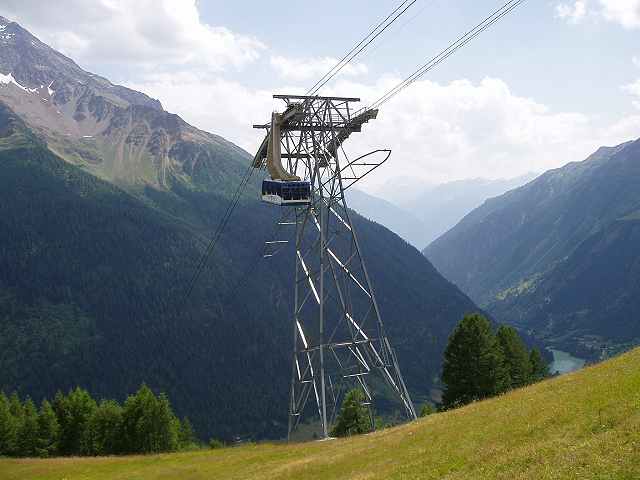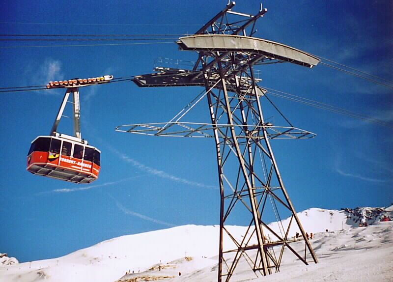 Die Stützen der Von Roll-Pendelbahn am Corvatsch wurden beim Umbau 1981 durch Garaventa nicht verändert. Neu waren die Fahrzeuge, die Stationssättel und die Steuerung.