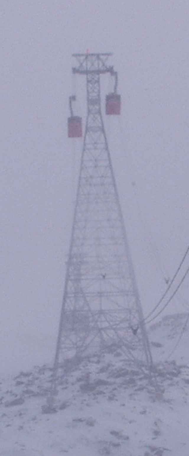 Hier meine erste Seilbahnfahrt mit Stützen-Zwischenhalt am Chäserugg, Stütze 4- leider im Nebel.Es war eine recht lange Fahrt, da der Bahnführer bei sehr langsamen Fahrt die Stütze suchen mußte-- und sie wollte ewig nicht kommen... muß dazusagen, hab das auch noch nicht gewußt, wie das eigentlich funktioniert mit dem Aussteigen an offener Stütze, ohne Treppen. Und vielleicht gibts Leute, die das auch mal sehn wollen-- deswegen n paar Bilder von dieser recht seltenen Fahrt.
