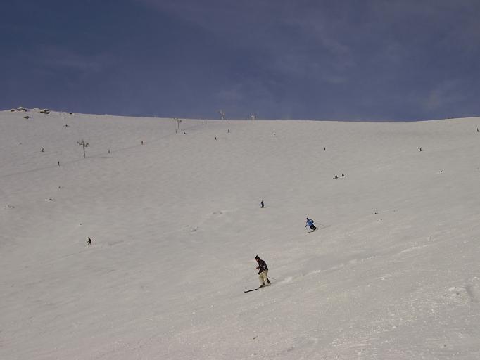 Hier hatte auch starker Wind den Schnee auf den oberen Pisten(so ab ca 1750m) komplett verblasen, sodass die Skischaukel von Nord nach Süd nicht möglich war.