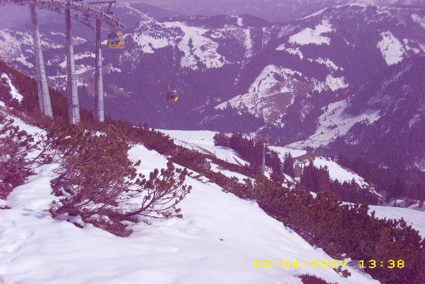 Die (Schnee-)Bedingungen waren diesmal einfach nicht mehr optimal. Liegt überall Schnee, sind alle Pisten auf, scheint mit das Gebiet recht abwechslungsreich. Was allerdings nicht ganz zutriftt, ist die Behauptung, dass hier alle Liftanlagen genau auf die Pisten abgestimmt sind (zutrffen mag das vielleicht bei der DSB, aber auf der Südseite gibts eigentlich nur zwei mehr oder weniger schmale Pisten, und die werden von einer 4SB + 8EUB erschlossen), und die waren sogar heute schon überlaufen. Naja, was solls. ... Wie schon ein paar Mal im Forum erwähnt wurde, sind die zwei GUBs nicht die allerbeste Lösung. Reckmoos Süd und auch Doischberg hätten ruhig eine KSB werden können. Abschnallen ist ziemlich oft angesagt.