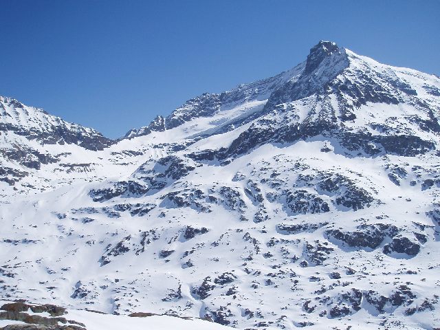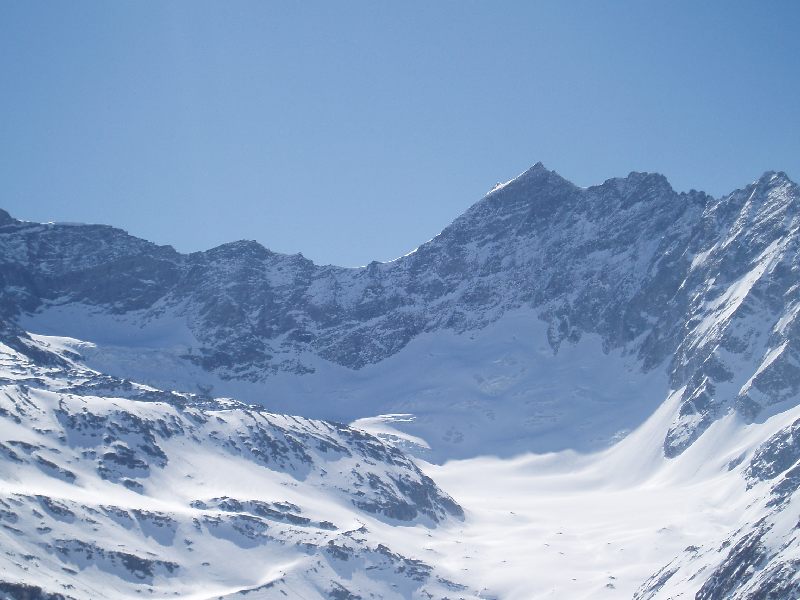 der Sonnblick 3088m. An diesem Tage sind etliche Tourengeher unterwegs auf seine Spitze! Übrigens eine superschöne Abfahrt!