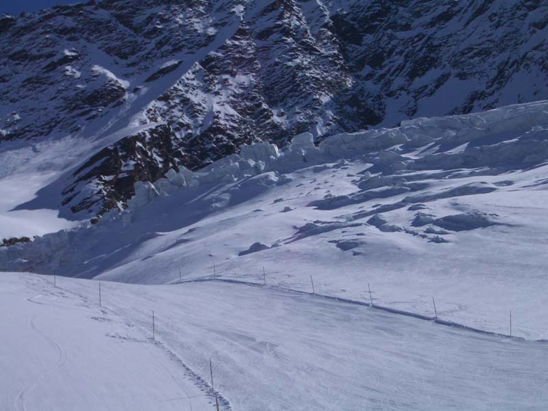 In Saas-Fee betrug die Schneehöhe zu Beginn des Urlaubs im Dorf an Schattenhängen etwa 80 cm, auf dem Gletscher mehr als 250cm.