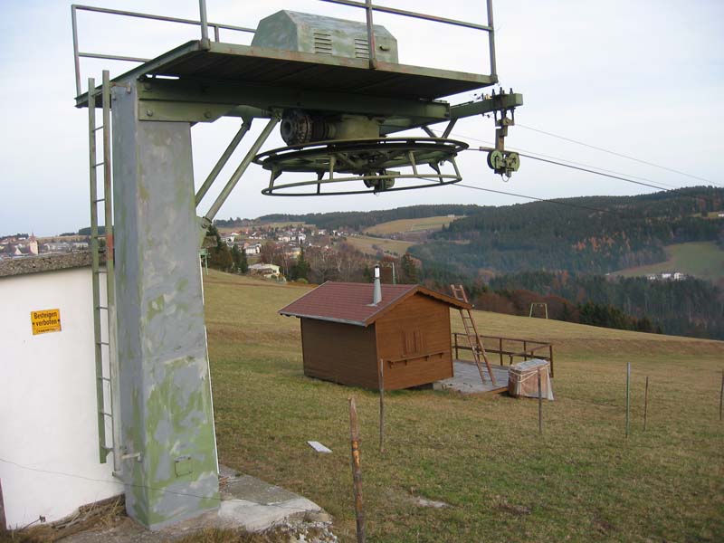 Der Pendelschlepper ist auch noch in Betrieb. Zum Wildberglift kommt man, wenn man in Kirchschlag von Linz kommend in den Haiderweg (benannt nach dem Bauern dort oben) einbiegt. Bei der Linkskurve der Panoramastraße nach rechts. Nach dem Bauernhof steht meine ich linker Hand der Schlepper. (Bergstation)