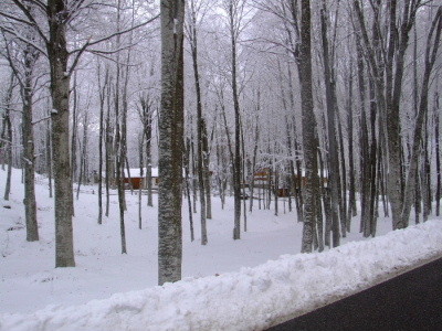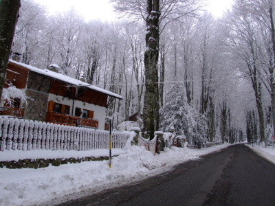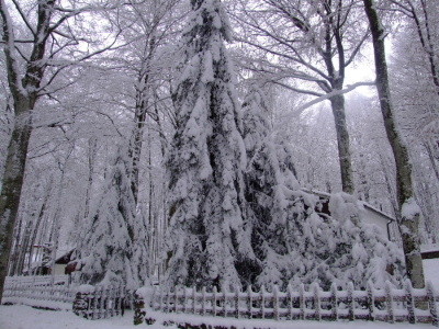 Weiter oben durchquert sie dichtem Mischwald. Leider ist der Berg selber in Wolken gehuellt, so dass die Sicht ab ungefaehr 1.200 Hoehenmeter eingeschraenkt ist. Unter http://www.amiataneve.it/ finden sich weitere Informationen ueber Oeffnungszeiten, Preise, Skischule wie auch Webcambilder und Pistenraupen.