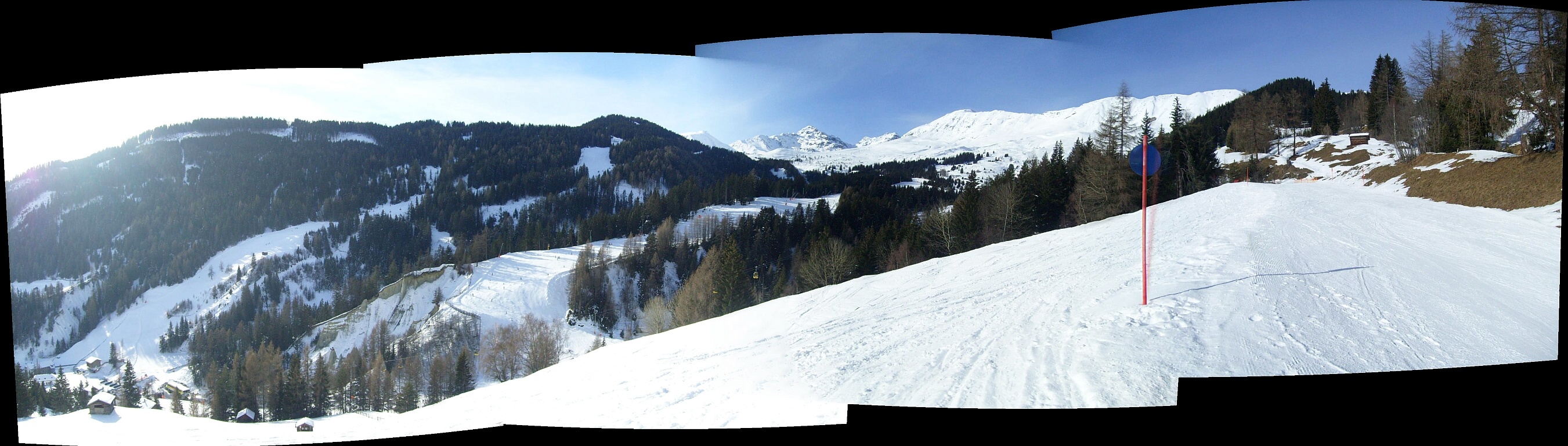 Panorama von der Südabfahrt, wo diese den 90-Grad-Knick in Richtung Talstationen macht.