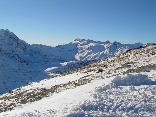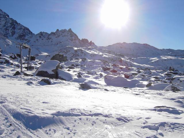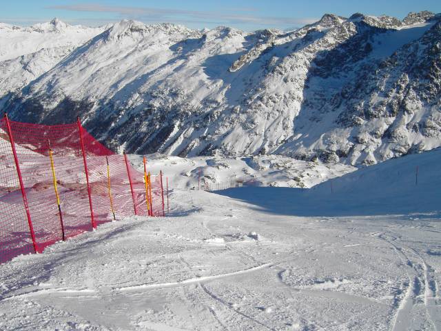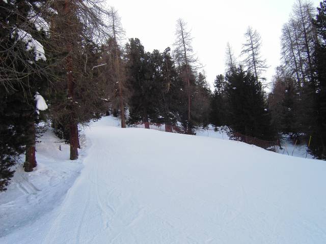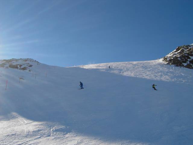 Noch einmal die Piste Surlej, die im frühen Nachmittag auch größtenteils in der Sonne liegt.