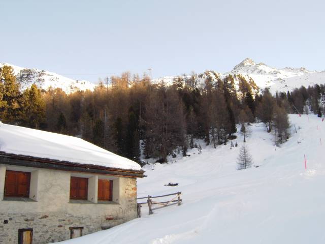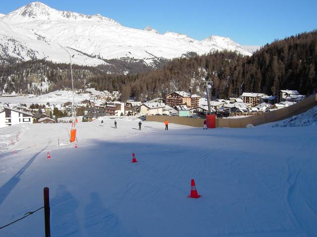 Die Talabfahrt kommt in Surlej an, gleich neben dem Übungslift Cristins.