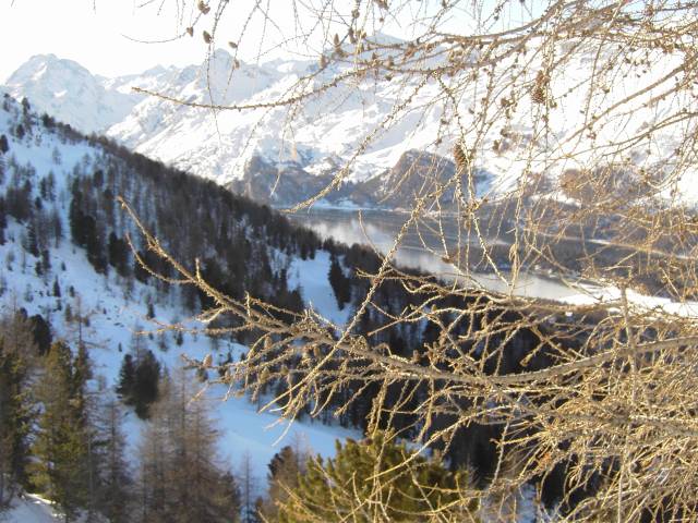 Auch die Silser Talabfahrt (Prasüra) ist sehr idyllisch und führt durch den Wald.