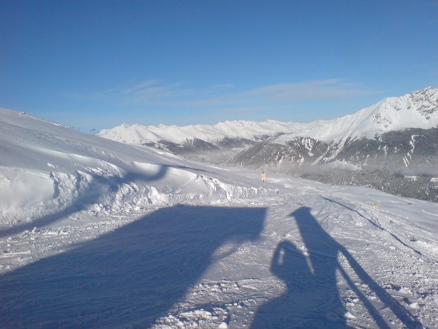 In Wahrheit liegen am Corvatsch (Mittelstation) aber nur 80cm, und das obwohl über das WE ca. 50cm Neuschnee gefallen sind.