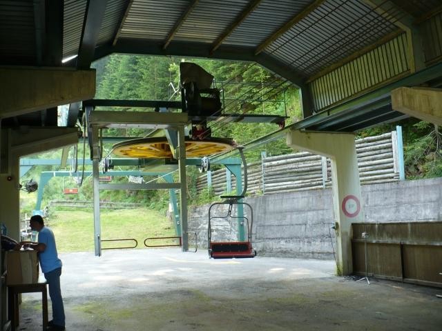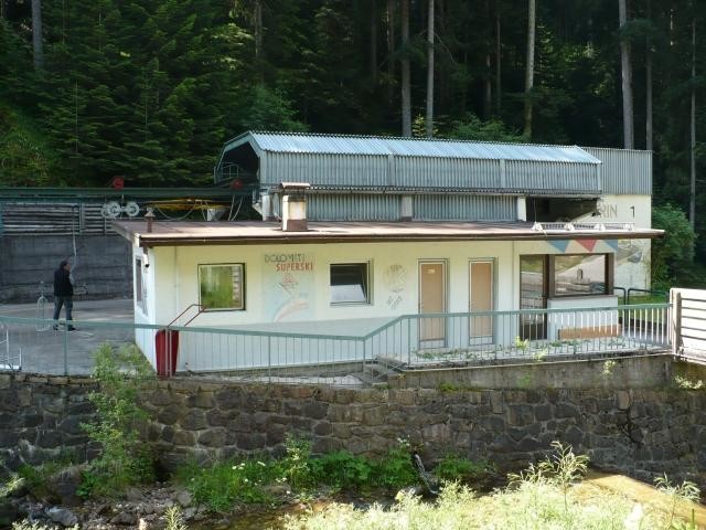 Dem Anschein nach gab es einst zwei Sektionen, beide als Stehkorblift/Gondellift oder auch "Telecabine" bezeichnet. Waehrend die obere Sektion "Laurin II" offensichtlich in den 90er Jahren durch eine DSB ersetzt wurde, scheint die untere Sektion "Laurin I" noch weitestgehend original - jetzt aber als DSB - erhalten zu sein. Es handelt sich dabei um eine klassische LEITNER Anlage mit den sich nach oben trapezfoermig verjuengenden Kastenstuetzen. Auf den ersten Blick scheint lediglich die typische Einfahrportalstuetze durch eine interessante einseitige Konstruktion ersetzt worden zu sein. Ein Blick durch's Fenster in den - leider abgeschlossenen - Maschinenraum zeigt, dass auch hier etwas renoviert worden ist: Statt der originalen Backenbremse ist nunmehr eine Scheinbenbremse als Betriebsbremse montiert. Weitere Aenderungen kann ich zur Zeit nur vermuten: So passt meines Erachtens die Form des Hauptantriebselektromotors nicht zum Baujahr 1970. Um definitive Aussagen treffen zu koennen, muesste ich allerdings vor Ort detailiert nachsehen. Der ziemlich gute optische Zustand von Stuetzen und Rollenbatterien legt die Vermutung nahe, dass die letzte Revision noch nicht sehr lange zurueck liegt. Gemaess der italienischen Vorschriften duerfte 2010 die maximale Betriebsdauer dieser Anlage leider ablaufen...