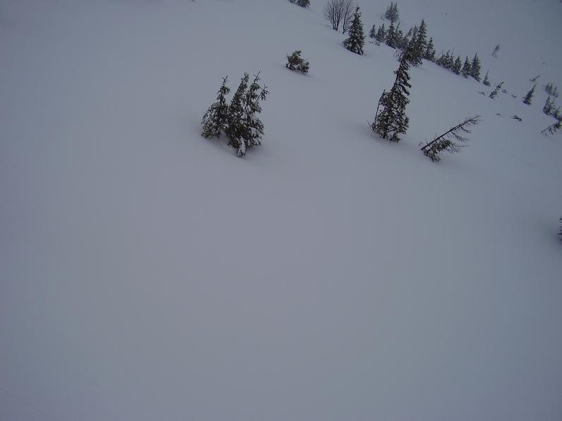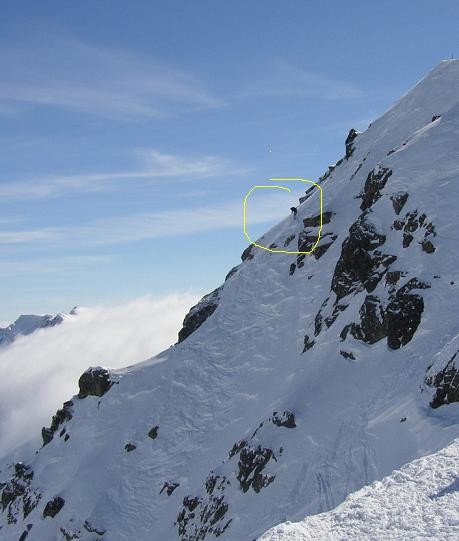 Als ich am Mittwoch dann mehrmals diese Rinne fuhr(ca 350 Hm), standen da den ganzen Tag 2 Gämsen beim Fressen. Die waren total unbeeindruckt von mir. Waren max 10m von mir entfernt. Ließen sich nicht weiter stören. Traf die bei 5 Abfahrten an. Siehe Bilder unten! Leider nur mit dem Handy geknipst....