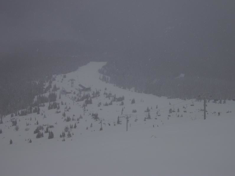 Katastrophe. Viel Schnee(120cm - 180 cm),Temperatur +1 bis 0C, aber ultra Nebel, ab Mittelstation Sturm. Nur der untere Schlepper, 4rer Sessel und der Kinderlift offen. Lifte u Pisten von 1085m- 1500m.....Sichtweite ca 5-10m. Totaler Mist. Nach 3 Stunden auf der gleichen Piste, Nase voll, Seitenwechsel....
