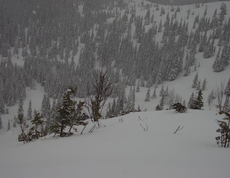 Bis 1300m Nieselregen, dann Schnee, weiter oben Sturm u Nebel. Schnee 80cm - 120cm, Temperatur +2 bis 0C