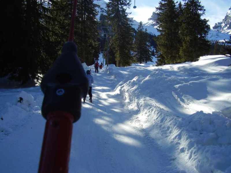 Über Espel uns Stöfeli gings dann über den Waldweg, die Rote 24, zurück zum Ruestelgebiet. Noch eine letzte Fahrt mit der 4 KSB Ruestel gemacht und via Talabfahrt 39 wieder zurück zum Ausgangspunkt. Die Talabfahrt war gut zu fahren. Es war zwar etwas sulziger Kunstschnee, aber nicht eisig.