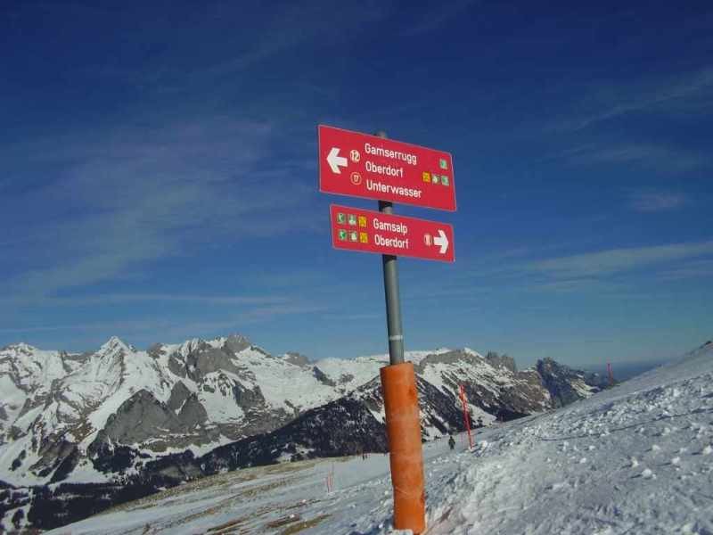Ich nahm die 18 und bin rüber zum SL Gamserrugg. Oben auf dem Gamserrugg wars auch ziemlich verblasen aber die Piste war gut zu fahren. Weiter gings auf den breiten Pisten 8, 5 und 6 zur KSB Gamsalp. Hier eine Wiederholungsfahrt gemacht weils so schön war und nochmals hoch zum Gamserrugg. Es folgte die Talfahrt nach Wildhaus, die, dank Beschneiung, gut zu fahren war. Dann gings wieder hoch bis zum Gipfel auf 2076 müM. Über die Rote 17 gings zum Espel SL. Die Verbindung vom Gamserrugg zum Iltios Gebiet führt über eine schmälere "Achterbahnpiste" zum SL Espel, von diesem bin ich zum SL Stöfeli weiter. Man kommt aber wohl auch direkt zum Iltios. Über den SL Stöfeli ist es aber schöner, denn so kommt man die Rote 21 runter die auch sehr viel Spass macht.
