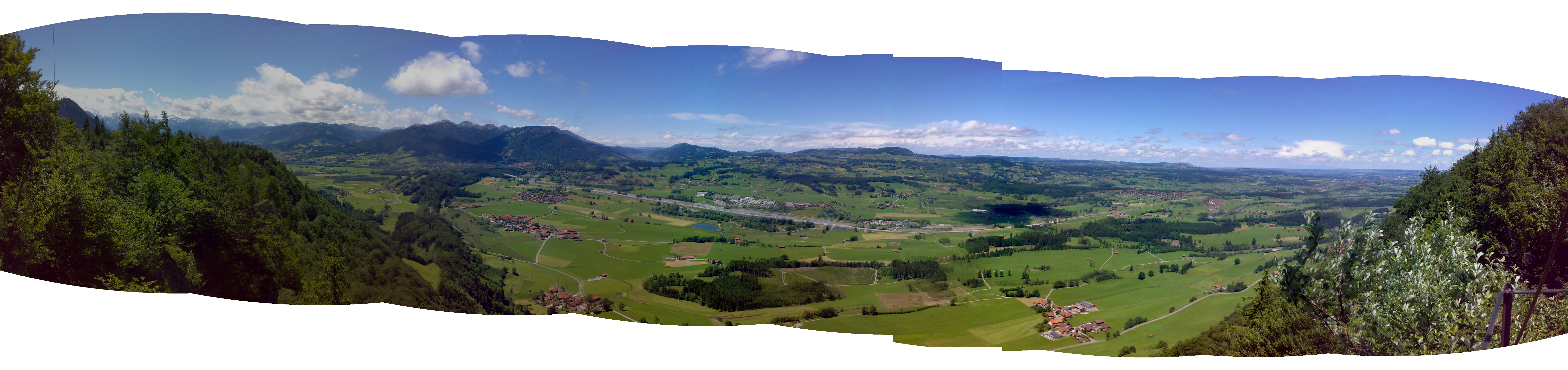 Ankunft auf dem Falkenstein (1.115m), es folgen Einzelaufnamen von dort, am Ende ein Link der zusammengesetzten Einzelaufnamen zu einem schönen Panorama eines Stückchens Allgäu: