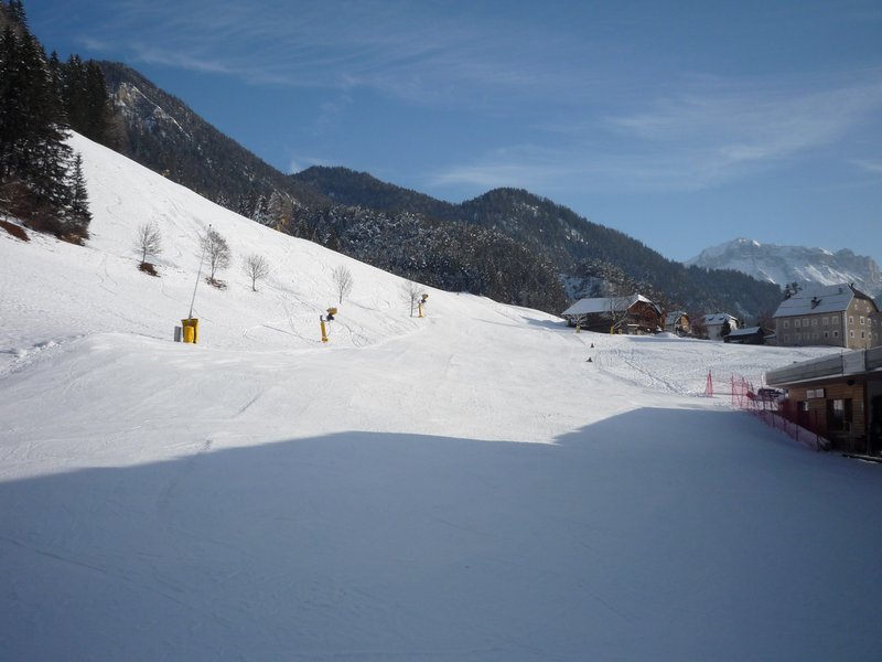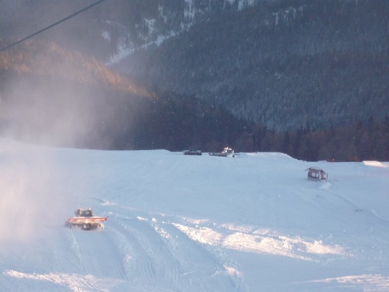 Die Schneekanonen auf der Olanger Talabfahrt liefen eigentlich die ganze Zeit, um die Abfahrt auf die volle Breite zu erweitern.