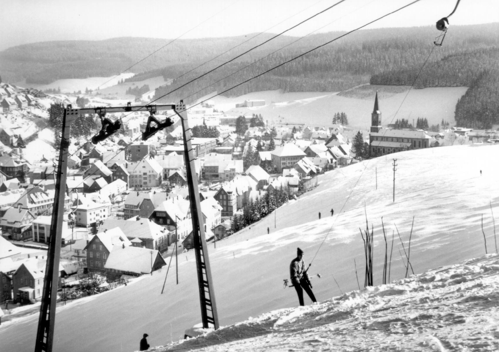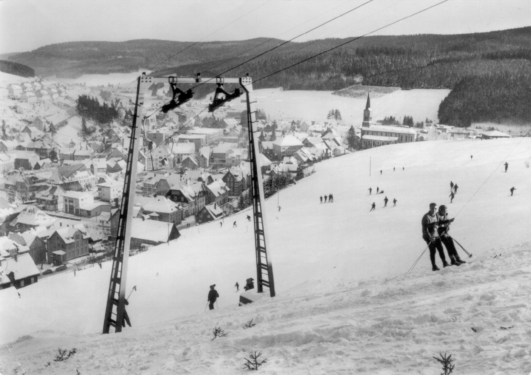 Dies ist der Skilift Staatsberg in Furtwangen ca. 1965. © Verlag Metz, Tübingen.