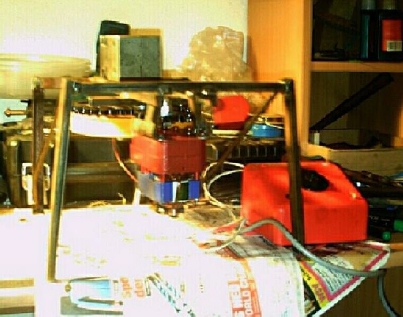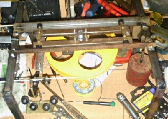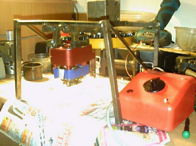 @sunset, das "Kastl" ist ein Teil eines verstorbenen Getriebemotors dessen kugelgelagerte Ausgangswelle ich für Tom´s Steurer "recycle". Der Motor wird später hängend vor der blauen Zwischenriemenscheibe montiert und wird diese mittels Zahnriemen antreiben - muß aber erst im Fundus suchen ob ich nen drehzahlbezogen und optisch halbwegs dazupassenden Motor dafür vorrätig hab.