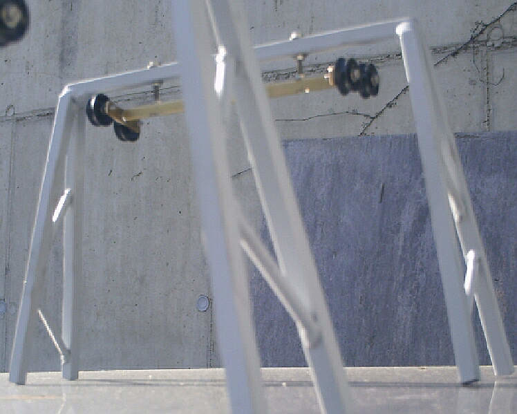 Wieder mal paar Neuigkeiten. Spanngewichtsbergstation wurde fertig und der Lift läuft in noch stützenloser "Schreibtischminiversion" seit gestern Abend in Dauertest. Als Seil wird auf Kundenwunsch ein 3 mm Polypropylenseil verwendet; normalerweise liefere ich solche Anlagen mit verzinktem Stahlseil DM 2 mm. Gerade aufgrund des sich längenden Textilseiles ist die Spannvorrichtung unerlässlich allerdings bei mir bei jeder Anlage Standard.