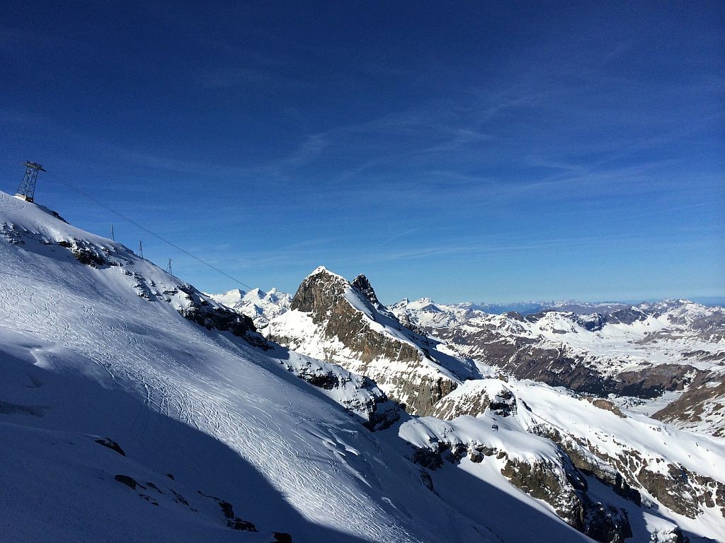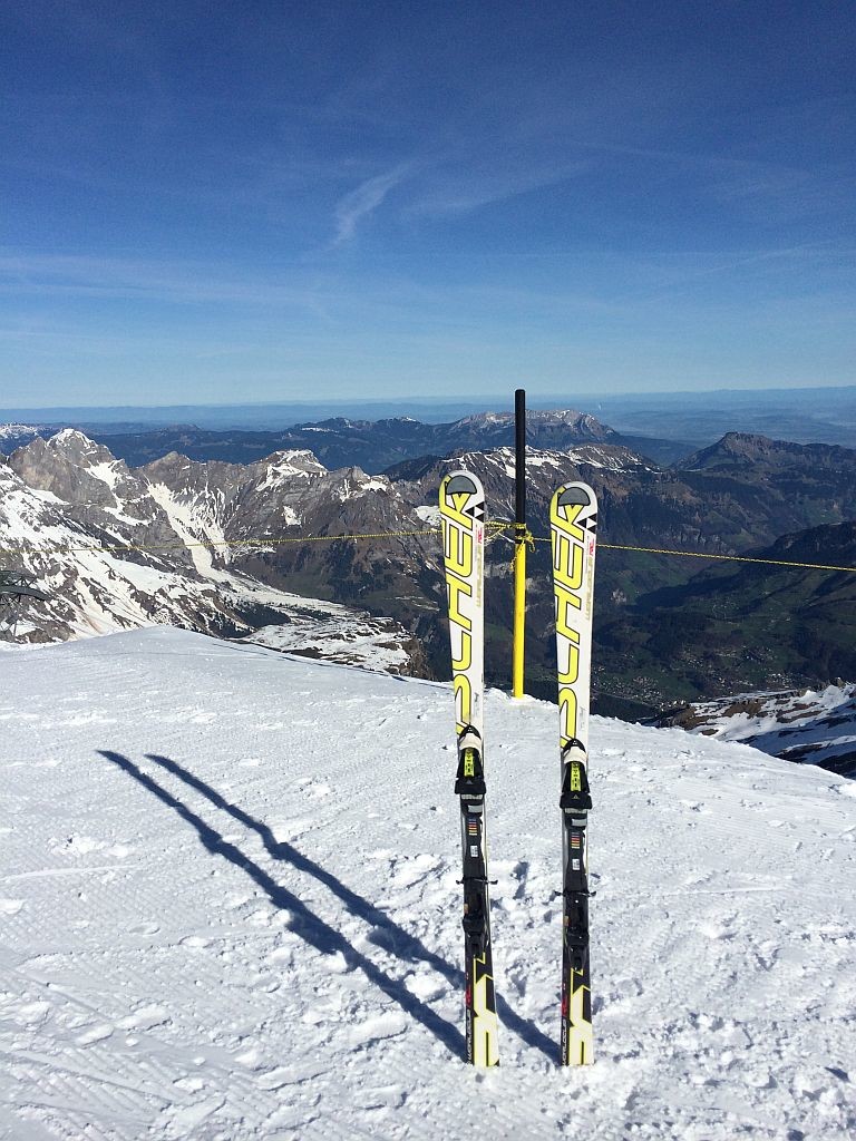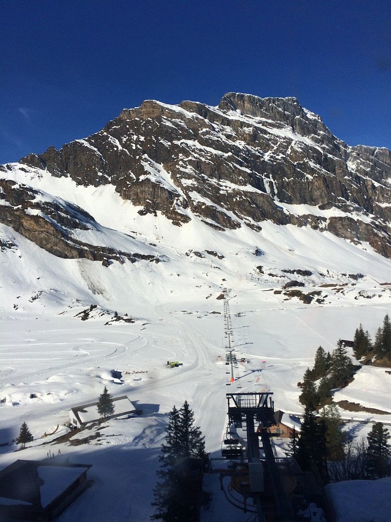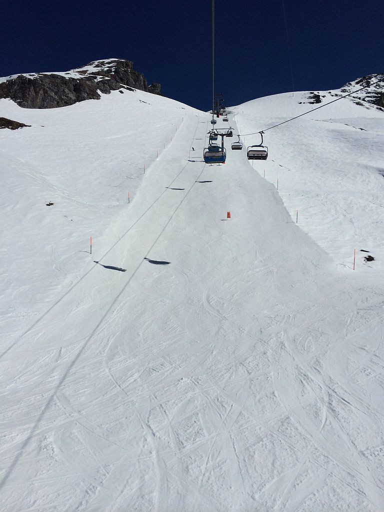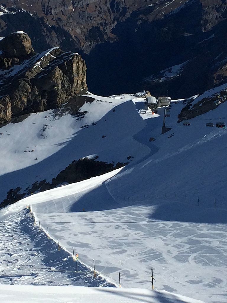Frei an einem Donnerstag? Sonne? Warum eigentlich nicht noch einmal auf die Piste, jetzt wo ich in der Nähe der Alpen wohne. Insofern mal schnell recherchiert, welche Gebiete noch auf haben und wie weit es dorthin ist. Wengen war ich schon diese Saison, Mürren war mir das Angebot zu gering. Also ab nach Engelberg. Nach knapp 2,5h Fahrt dann um 9h auf dem P1 an der Talstation angekommen und mich schnell in die doch langsam laufende 6EUB gesetzt. Nach zweimal Umsteigen auf dem Titlis angekommen und einer kurzen aber großartigen Abfahrt am (langsamen!) Ice-Flyer rüber zum Schlepplift gewechselt. Welch großartiger Schnee, welch großartige Neigung. Das sah meine Bindung anders, zeigte erste Auflösungserscheinungen und warf mich spektakulär ab. Auf einem Ski ging es dann wieder zum Titlis, einmal ganz runter, neue Bindung besorgen, und dann wieder ganz hoch. Ärgerliche 90minuten gingen verloren. Doch es reichte noch immer für einen tollen restlichen Skitag bei perfekten Bedingungen!