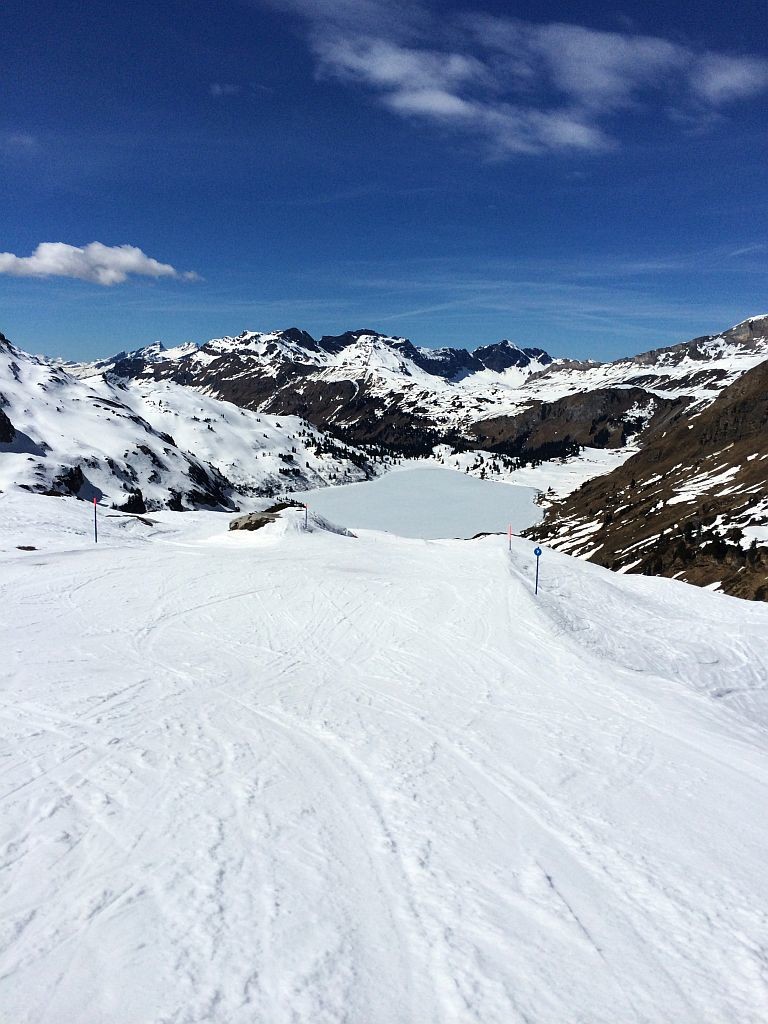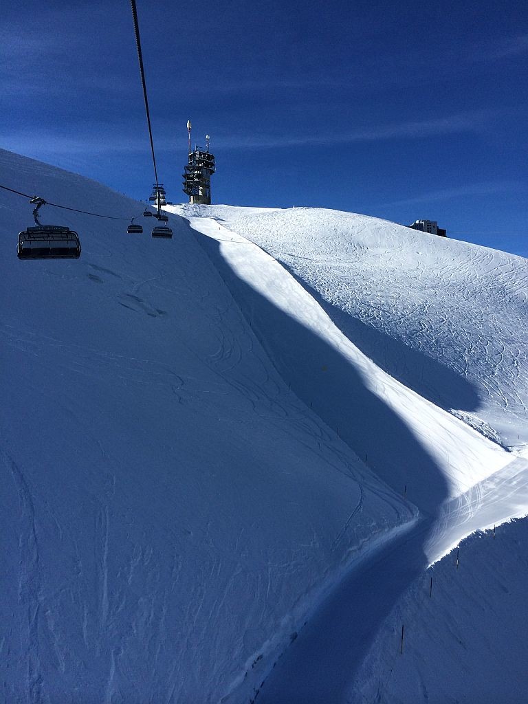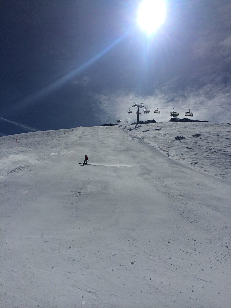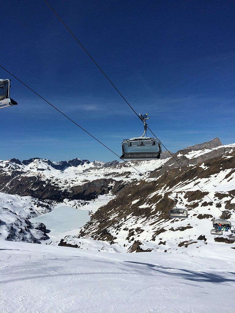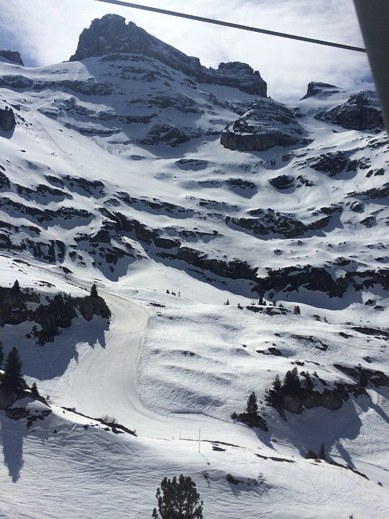 Frei an einem Donnerstag? Sonne? Warum eigentlich nicht noch einmal auf die Piste, jetzt wo ich in der Nähe der Alpen wohne. Insofern mal schnell recherchiert, welche Gebiete noch auf haben und wie weit es dorthin ist. Wengen war ich schon diese Saison, Mürren war mir das Angebot zu gering. Also ab nach Engelberg. Nach knapp 2,5h Fahrt dann um 9h auf dem P1 an der Talstation angekommen und mich schnell in die doch langsam laufende 6EUB gesetzt. Nach zweimal Umsteigen auf dem Titlis angekommen und einer kurzen aber großartigen Abfahrt am (langsamen!) Ice-Flyer rüber zum Schlepplift gewechselt. Welch großartiger Schnee, welch großartige Neigung. Das sah meine Bindung anders, zeigte erste Auflösungserscheinungen und warf mich spektakulär ab. Auf einem Ski ging es dann wieder zum Titlis, einmal ganz runter, neue Bindung besorgen, und dann wieder ganz hoch. Ärgerliche 90minuten gingen verloren. Doch es reichte noch immer für einen tollen restlichen Skitag bei perfekten Bedingungen!