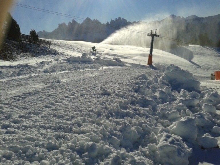 Auf der Plose mittlerweile alle Anlagen geöffnet. Auch von den Pisten ist das meiste befahrbar. Die Verhältnisse sind ziemlich gut, abgesehen von ein paar harten Stellen wegen des Nordföhns der letzten Tage.