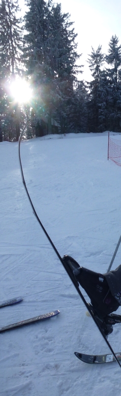 ... Ski gebrochen. Sah lustig aus, aber natürlich kann man damit nicht fahren. Glücklicherweise hatte ich selbst noch ein Ersatzpaar dabei, sodass ich ihr meine neuen Ski überlassen konnte und selbst ein älteres nehmen konnte (beim neuen lässt sich die Bildung sehr viel leichter verstellen und meine Füße/Skischuhe sind halt doch etwas größer)